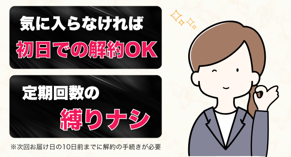 通販によくある「◯回買わないと解約出来ない」という縛りも無いので、『1回きり』でOK!